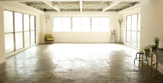 ほど良い自然光が注ぎ込むハウス系スタジオです。約100?の1フロアにはコンクリート剥き出しのインダストリアルな空間と、暖かみのあるフローリング調の空間があります。引きの撮影もでき、大人数での利用にも適しています。都内でこの広さの料金としては格安です!