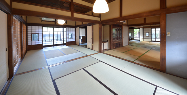 建物は瓦葺の平屋となっており、8~12畳の本格的な和室が7間。洋室が2室ございます。オール電化のシステムキッチンが併設されており、調理の撮影を行うことも可能です。大変広い家屋ですので、本格的なロケ撮影、映画撮影、コスプレ撮影などに適しております。テレビ番組の収録にも適しております。近くの浜辺ではドラマの収録も行われておりますので、長期に渡る場合は、当古民家を拠点にしていただくことも可能です。