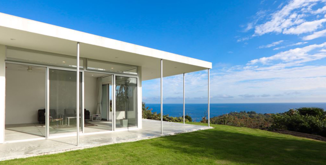 相模湾を一望する川奈の丘陵にたたずむ、モダンなハウススタジオドラセナテラス。室内からも海が望め、様々なシュチュエーションに対応可能です。