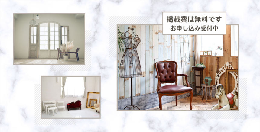 レンタル撮影スタジオ様を掲載料無料にて登録・紹介いたします。