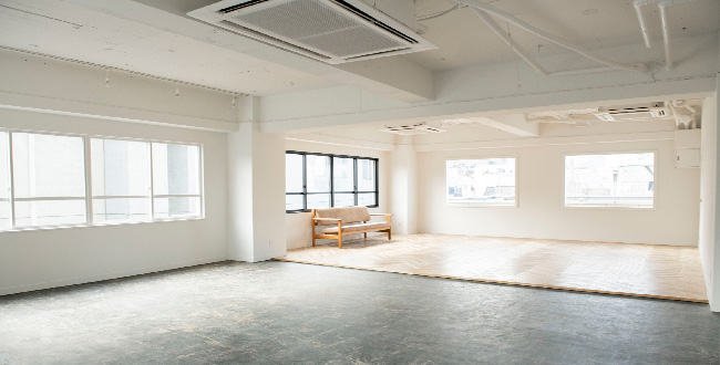 外苑西通り沿いで、1日中自然光がたっぷり入る、広々としたスタジオ。床は木材とコンクリートの2種類あり、アンティーク家具と機材が無料でお使い頂けるスタジオです。