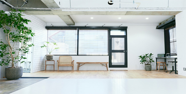 スタジオ内は、天高3m以上と開放的な雰囲気で、自然光の採光もあります。